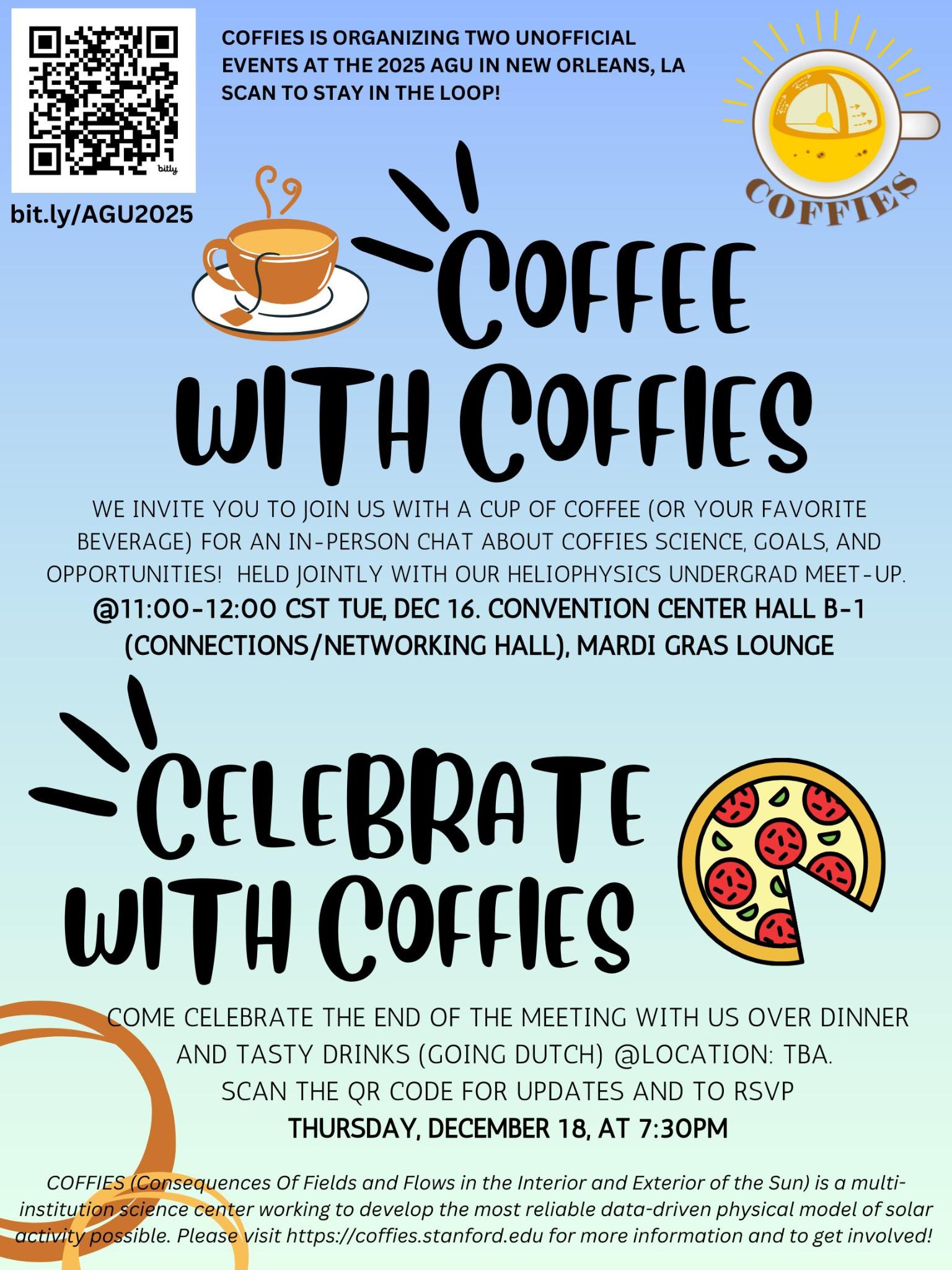 📌 We invite you to join us with a cup of coffee (or your favorite beverage) for an in-person chat about COFFIES science, goals, and opportunities! This year, Coffee with COFFIES is being held jointly with our HelioHub Undergraduate Meet-Up.